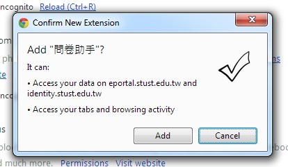 問卷助手上架了!Chrome 最近阻擋了非官方來源的擴充套件,所以請不要在用下面的方法了,直接到下面的連結點選安裝即可
