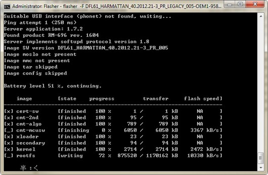 flasher -F DFL61_HARMATTAN_40.2012.21-3_PR_LEGACY_003-OEM1-958_ARM.bin --flash-only cmt -f