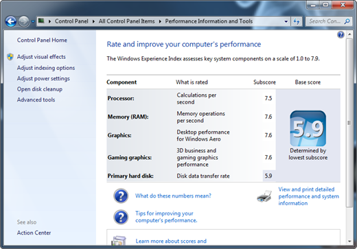 雖然是 SSD ,可是在Windows 體驗分數裡會不會有什麼優勢,硬碟還是一樣5.9分…XD