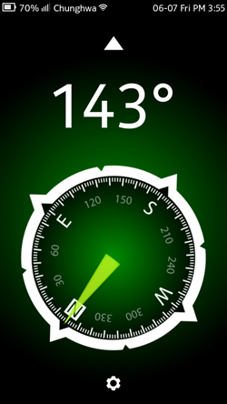Nokia N9 內建了磁力計,雖說內建的地圖就能用磁力計標出東西南北,但為了看方位還得特地打開地圖實在有點脫褲子放屁,「Compass」這套軟體可以讓你快速得知目前的方位